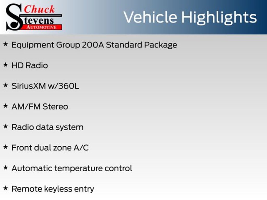 Active Valve Performance Exhaust, Alloy wheels, AM/FM Stereo, Automatic temperature control, Delay-off headlights, Emergency communication system: 911 Assist, Equipment Group 200A Standard Package, Front dual zone A/C, Fully automatic headlights, HD Radio, Over-the-Top Racing Stripe, Radio data system, Remote keyless entry, SiriusXM w/360L, Steering wheel mounted audio controls, SYNC 4, Telescoping steering wheel, Tilt steering wheel, Wheels: 19" x 8.5" Premier Polished Aluminum.