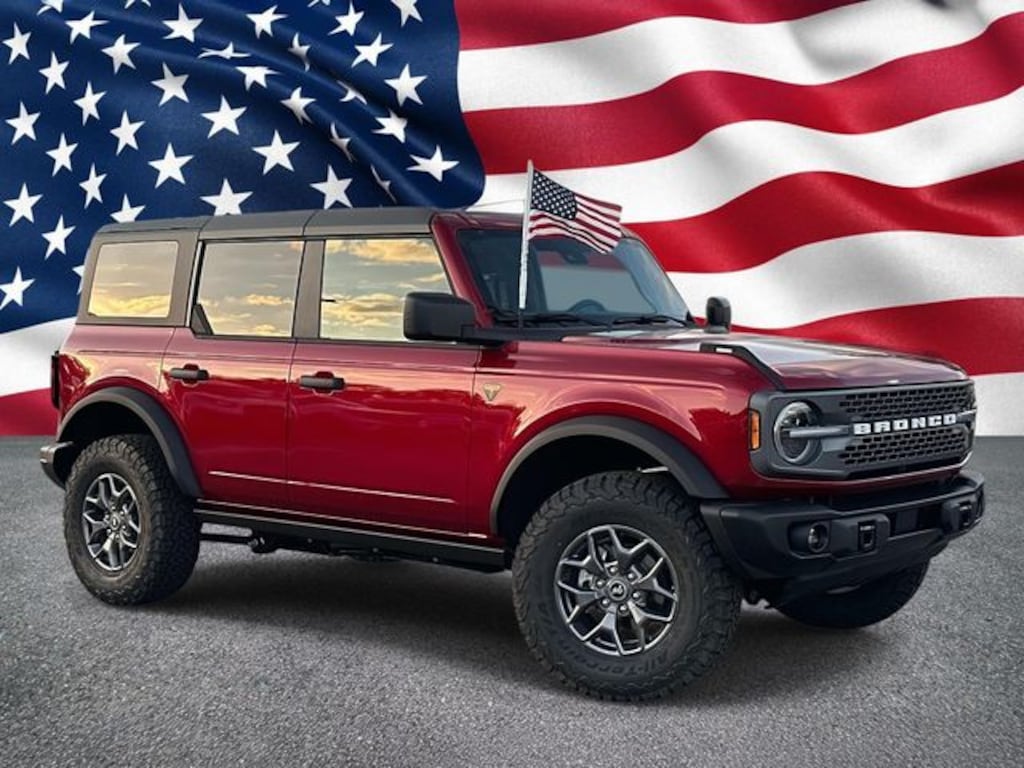 Look at this Red 2025 Ford Bronco Badlands, featuring a Black interior and powered by a 2.7L V6 Twin Turbocharged (EcoBoost) engine. The Bronco Badlands is great and reliable, and built to tackle any adventure, making it a smart choice for drivers who want performance, comfort, and reliability in one package.