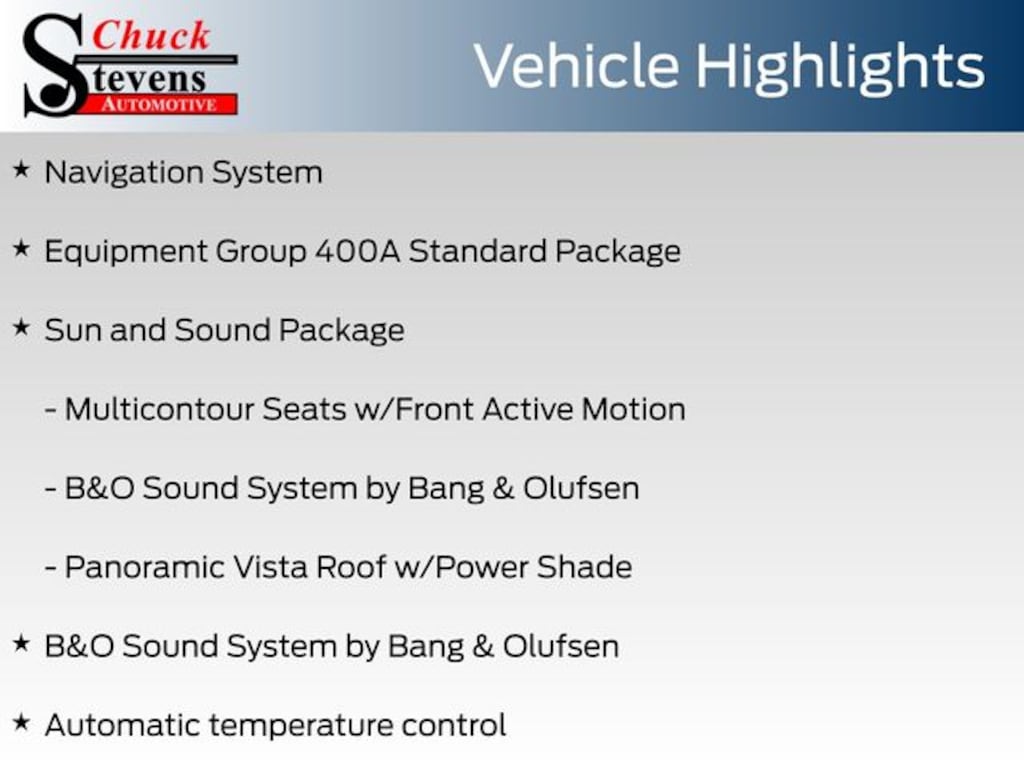 3rd row seats: bench, Alloy wheels, Apple CarPlay/Android Auto, Automatic temperature control, B&O Sound System by Bang & Olufsen, Emergency communication system: 911 Assist, Equipment Group 400A Standard Package, Exterior Parking Camera Rear, Front dual zone A/C, Front fog lights, Fully automatic headlights, Heated front seats, Heated rear seats, Heated/Ventilated Miko Sport Captain's Chairs, Memory seat, Multicontour Seats w/Front Active Motion, Navigation System, Panoramic Vista Roof w/Power Shade, Power Liftgate, Rain sensing wipers, Remote keyless entry, SecuriCode Keyless Entry Keypad, Steering wheel mounted audio controls, Sun and Sound Package, Telescoping steering wheel, Tilt steering wheel, Variably intermittent wipers, Ventilated front seats, Wheels: 21" Magnetite-Painted Aluminum.