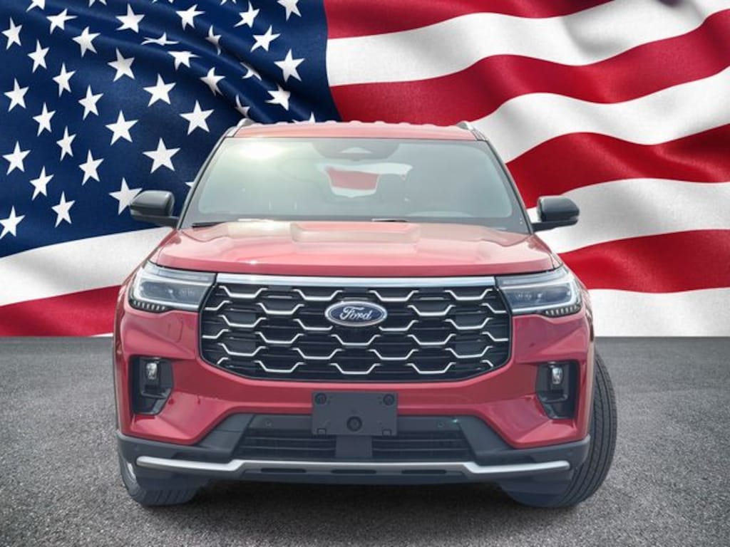 Look at this Red 2026 Ford Explorer Platinum, featuring ActiveX Trimmed Captain's Chairs interior and powered by a 2.3L EcoBoost I-4 engine. The Explorer is great and reliable, and built to handle any task, making it a smart choice for drivers who want performance, comfort, and reliability in one package.