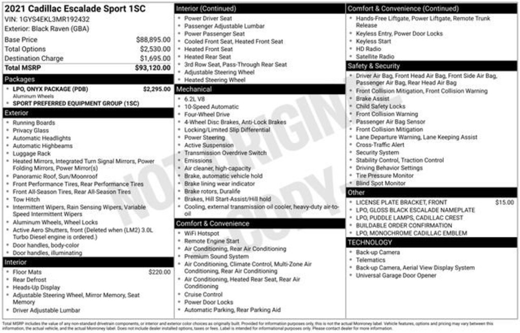 Welcome to Chuck Stevens Chevrolet located on HWY 31 South, Bay Minette Alabama. We are home of Lifetime Powertrain Warranty. A Lifetime Powertrain Warranty at no additional cost. Grab a great deal with our low-price guarantee on this 2021 Cadillac Escalade while we still have it. At Chuck Stevens Chevrolet our Pre-Owned vehicles have been fully inspected and reconditioned by a certified technician. The Black Raven 2021 Cadillac Escalade with Black Leather interior is a great choice.The online price includes a $2,500 Cash Down or trade equity. To qualify, customers must trade in a vehicle with a minimum appraised value of $2,500 or Cash Down. All prices reflect dealership financing and include a $1,000 finance coupon. See dealer for full details.Recent Arrival!2021 Cadillac Escalade Sport Black Raven 4D Sport Utility Sport 4WD 6.2L V8 10-Speed Automatic with OverdriveLIFETIME POWERTRAIN WARRANTY PROGRAM is included at no additional charge for all vehicles that have less than 80,000 miles. It is one of the most comprehensive powertrain warranty programs in the market. See dealer for details.