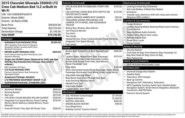 Grab a great deal with our low-price guarantee on this 2015 Chevrolet Silverado 2500HD LTZ while we still have it. At Chuck Stevens Chevrolet our Pre-Owned vehicles have been fully inspected and reconditioned by a certified technician. The Black 2015 Chevrolet Silverado 2500HD LTZ with Leather interior is a wonderful choice.