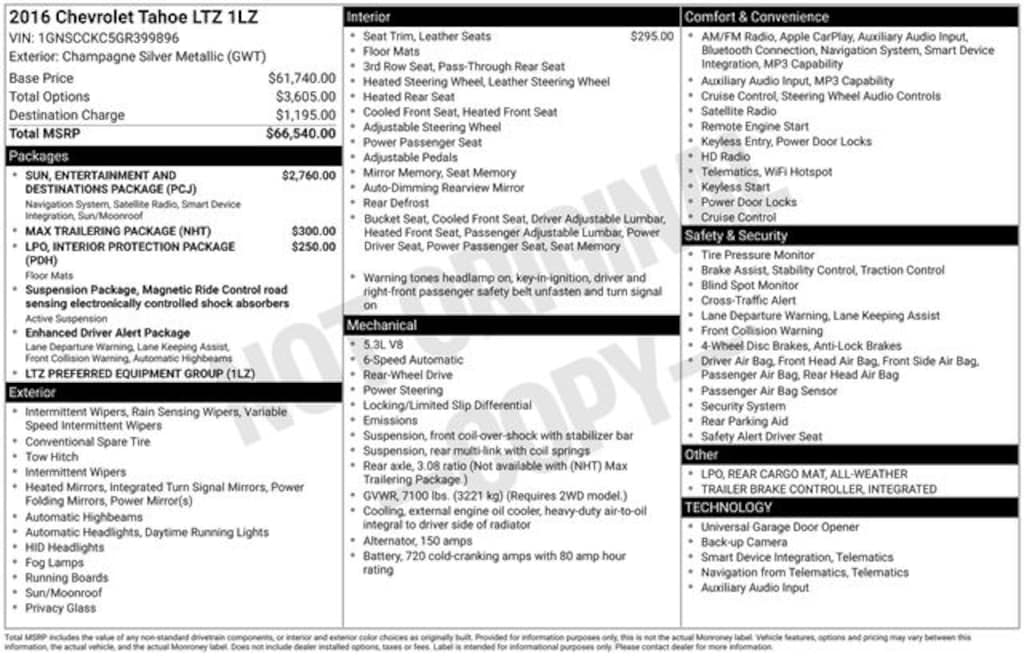 Take advantage of our low-price guarantee on this 2016 Chevrolet Tahoe. This Tahoe comes finished in Champagne Silver Metallic with a Cocoa/Mahogany interior, making it a wonderful choice for your next vehicle.