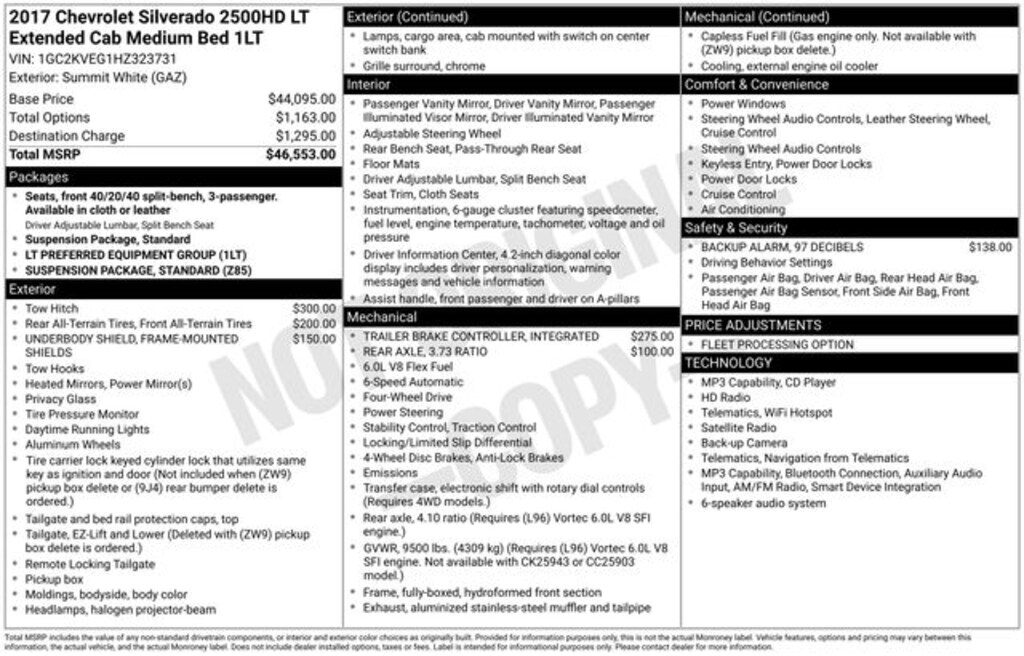 2017 Chevrolet Silverado 2500HD LT 4D Double Cab LT Summit White 4WD Vortec 6.0L V8 SFI Flex Fuel VVT 6-Speed Automatic HD Electronic with Overdrive