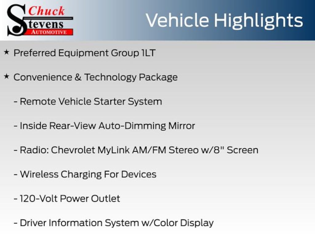 ⢠Radio: Chevrolet MyLink AM/FM Stereo w/8" Screen