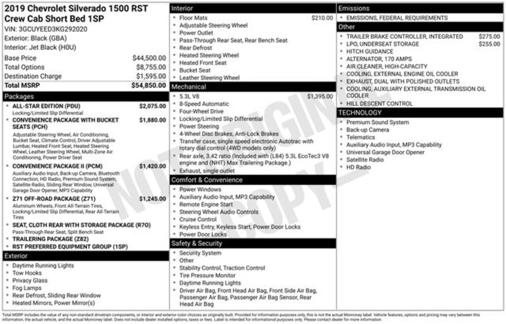 2019 Chevrolet Silverado 1500 RST 4D Crew Cab RST Black 4WD EcoTec3 5.3L V8 8-Speed Automatic