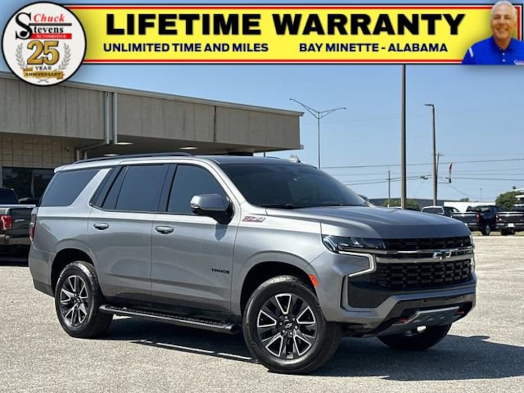 Welcome to Chuck Stevens Chevrolet located on HWY 31 South, Bay Minette Alabama. We are home of Lifetime Powertrain Warranty. A Lifetime Powertrain Warranty at no additional cost. Grab a great deal with our low-price guarantee on this 2021 Chevrolet Tahoe while we still have it. At Chuck Stevens Chevrolet our Pre-Owned vehicles have been fully inspected and reconditioned by a certified technician. The Satin Steel Metallic 2021 Chevrolet Tahoe with Gideon/Very Dark Atmosphere Leather interior is a great choice.