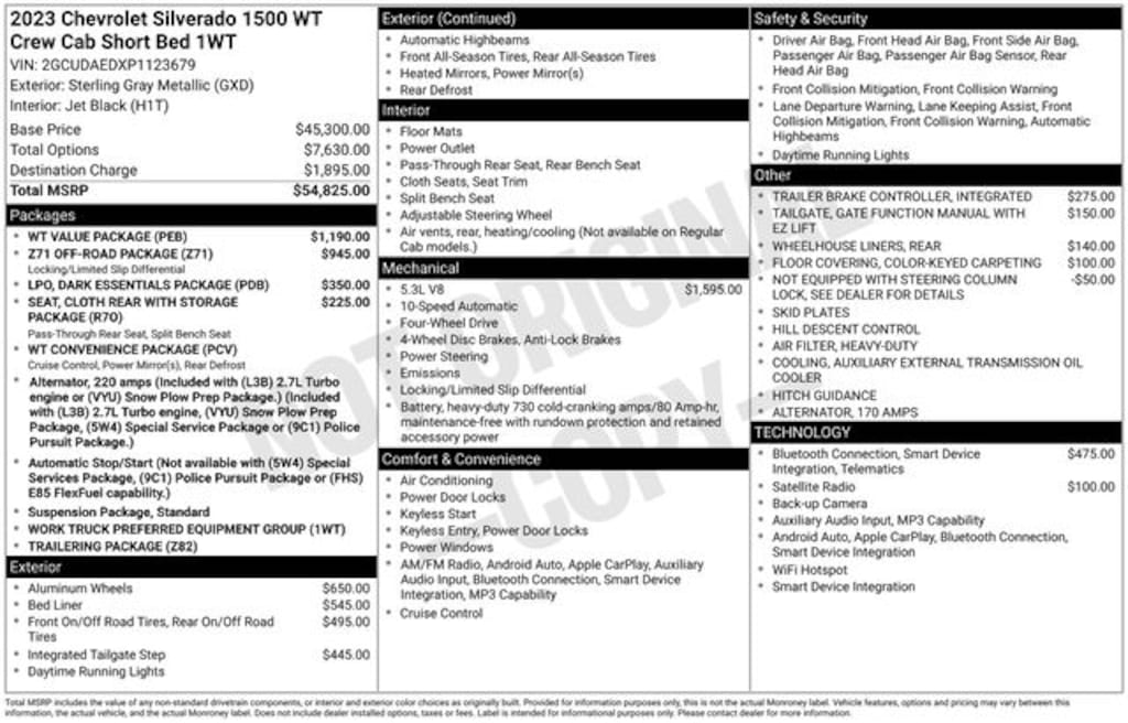 Take advantage of our low-price guarantee on this 2023 Chevrolet Silverado 1500. This Silverado 1500 comes finished in Sterling Gray Metallic with a Black interior, making it a great choice for your next vehicle.