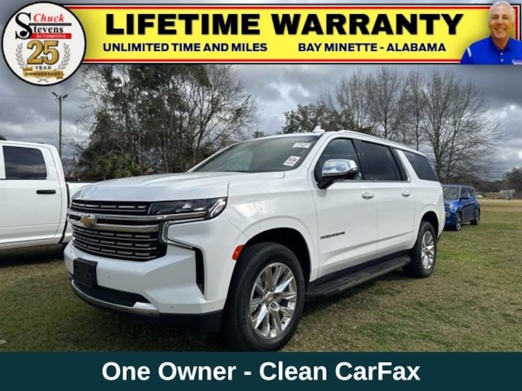 Welcome to Chuck Stevens Dodge Chrysler Jeep Ram Fiat located on HWY 31 South, Bay Minette Alabama. We are home of The Lifetime Powertrain Warranty at no additional cost. Grab a great deal with our low-price guarantee on this 2023 Chevrolet Suburban Premier while we still have it. At Chuck Stevens CDJRF our Pre-Owned vehicles have been fully inspected and reconditioned by a certified technician. The White 2023 Chevrolet Suburban Premier with Black interior is a wonderful choice.