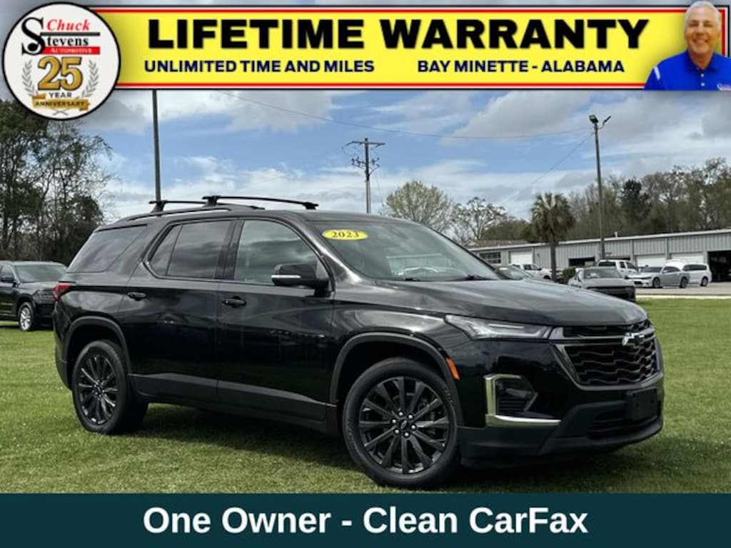 Welcome to Chuck Stevens Dodge Chrysler Jeep Ram Fiat located on HWY 31 South, Bay Minette Alabama. We are home of The Lifetime Powertrain Warranty at no additional cost. Grab a great deal with our low-price guarantee on this 2023 Chevrolet Traverse RS while we still have it. At Chuck Stevens CDJRF our Pre-Owned vehicles have been fully inspected and reconditioned by a certified technician. The Black 2023 Chevrolet Traverse RS with Perforated Leather-Appointed Seat Trim interior is a wonderful choice.