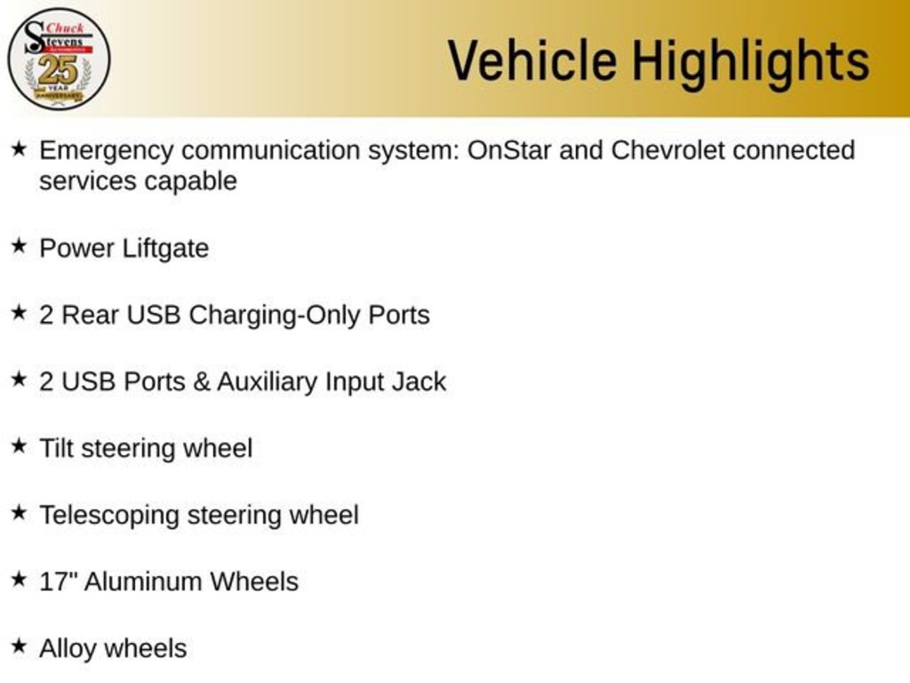- Emergency SOS Capable : OnStar and Chevrolet connected services capable vehicle integrated emergency SOS system