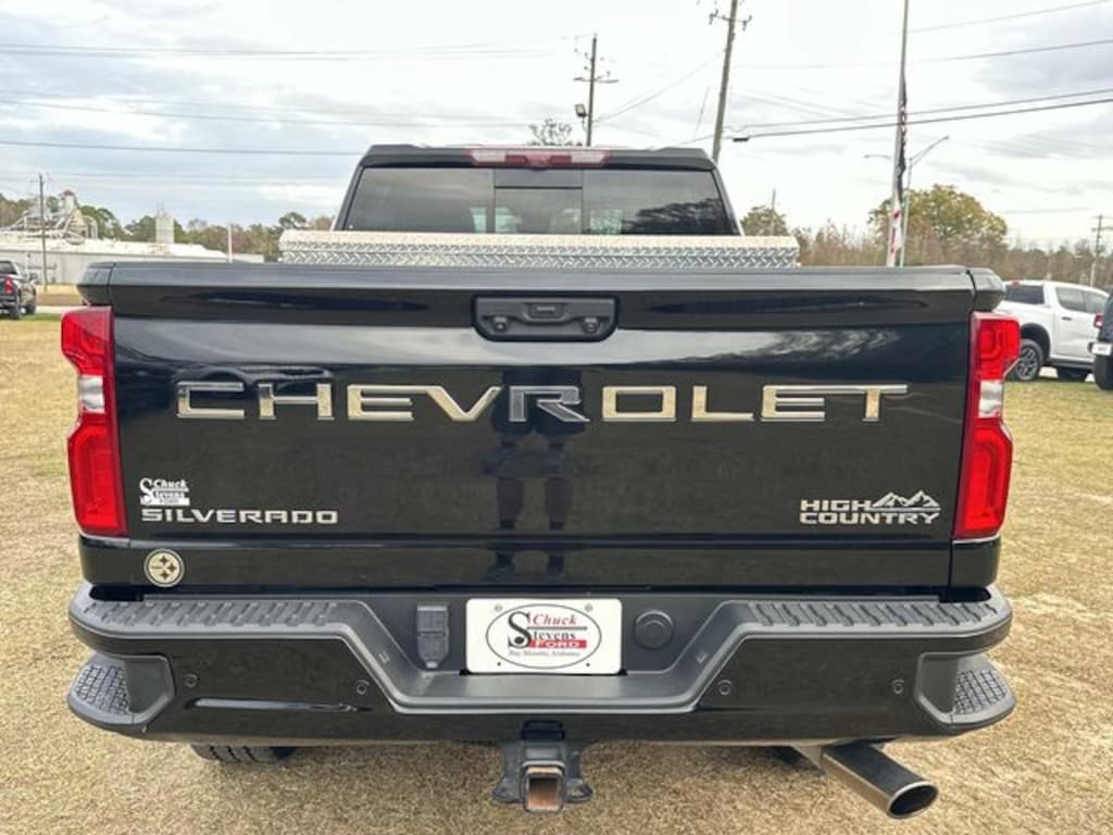 Inside, the Silverado 2500HD High Country pampers you with luxurious touches, such as perforated leather seating, heated and ventilated front seats, a heated steering wheel, and a premium Bose audio system. The spacious cabin provides ample room for passengers and cargo, while the power sliding rear window and power-operated tailgate add to the truck's versatility.
