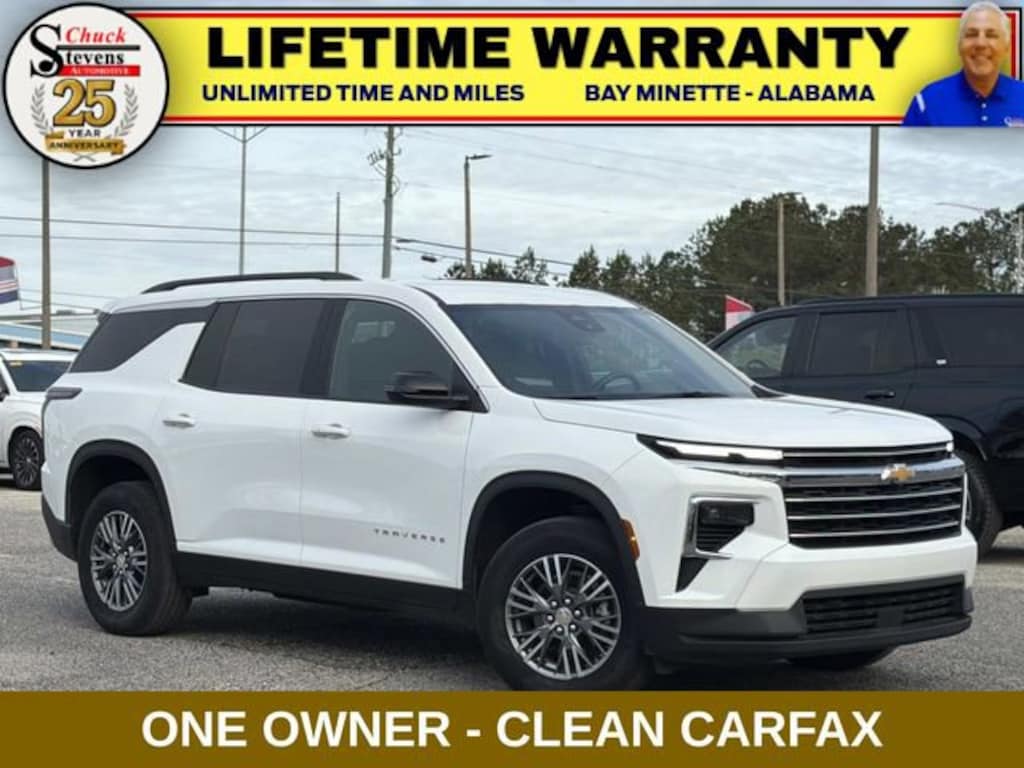 Grab a great deal with our low-price guarantee on this 2025 Chevrolet Traverse LT 2LT while we still have it. At Chuck Stevens Chevrolet our Pre-Owned vehicles have been fully inspected and reconditioned by a certified technician. The White 2025 Chevrolet Traverse LT 2LT with Premium Cloth Seat Trim interior is a wonderful choice.