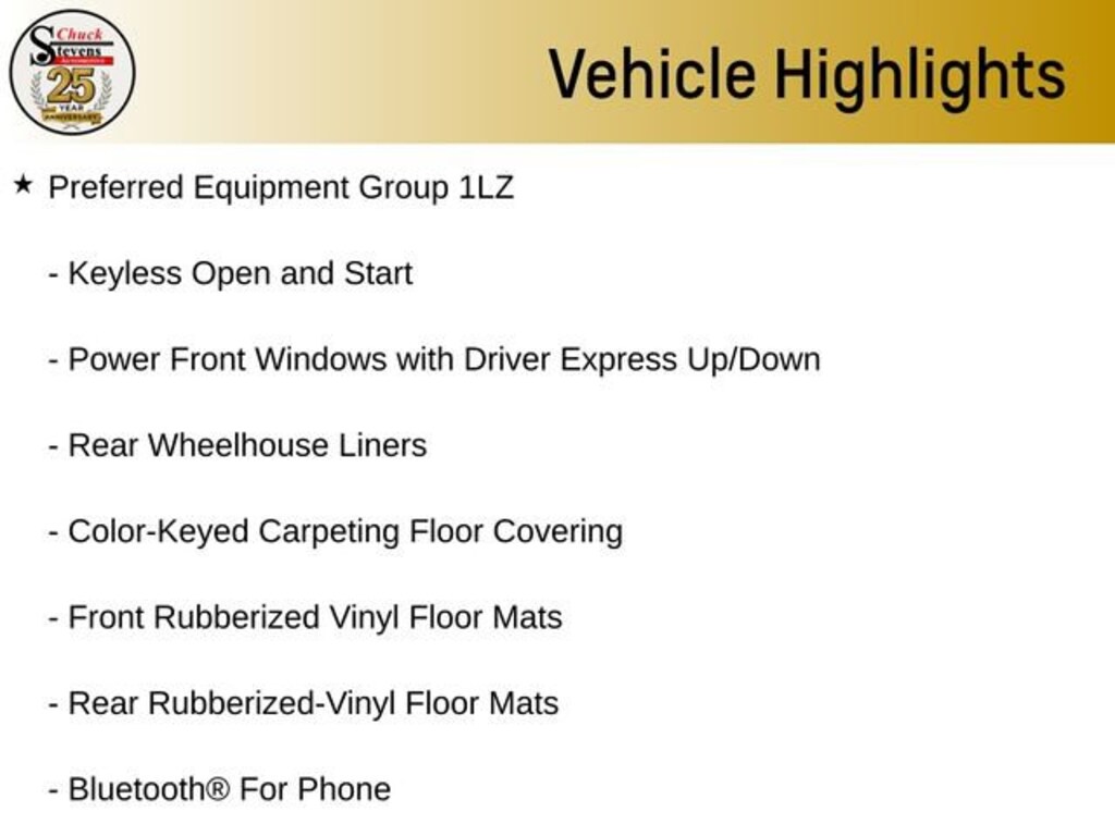 Welcome to Chuck Stevens Chevrolet located on HWY 31 South, Bay Minette Alabama. We are home of Lifetime Powertrain Warranty. A Lifetime Powertrain Warranty at no additional cost.