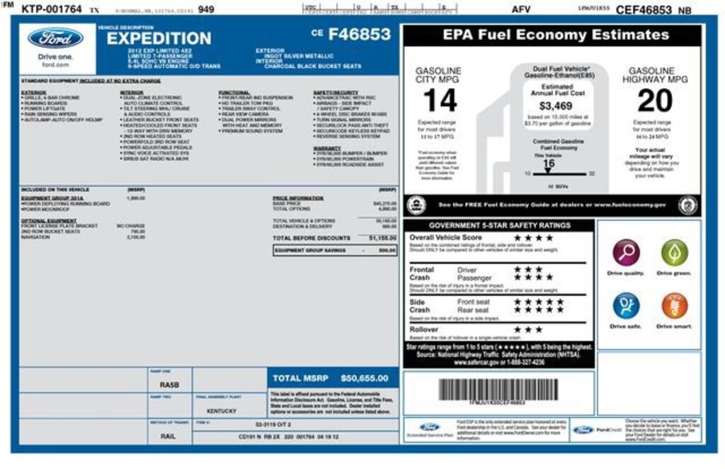 Welcome to Chuck Stevens Chevrolet located on HWY 31 South, Bay Minette Alabama. We are home of Lifetime Powertrain Warranty. A Lifetime Powertrain Warranty at no additional cost. Grab a great deal with our low-price guarantee on this 2012 Ford Expedition while we still have it. At Chuck Stevens Chevrolet our Pre-Owned vehicles have been fully inspected and reconditioned by a certified technician. The Silver 2012 Ford Expedition with Leather interior is a terrific choice.The online price includes a $2,500 Cash Down or trade equity. To qualify, customers must trade in a vehicle with a minimum appraised value of $2,500 or Cash Down. All prices reflect dealership financing and include a $1,000 finance coupon. See dealer for full details.Recent Arrival!2012 Ford Expedition Limited Silver 4D Sport Utility Limited RWD 5.4L V8 SOHC 24V FFV 6-Speed AutomaticLIFETIME POWERTRAIN WARRANTY PROGRAM is included at no additional charge for all vehicles that have less than 80,000 miles. It is one of the most comprehensive powertrain warranty programs in the market. See dealer for details.