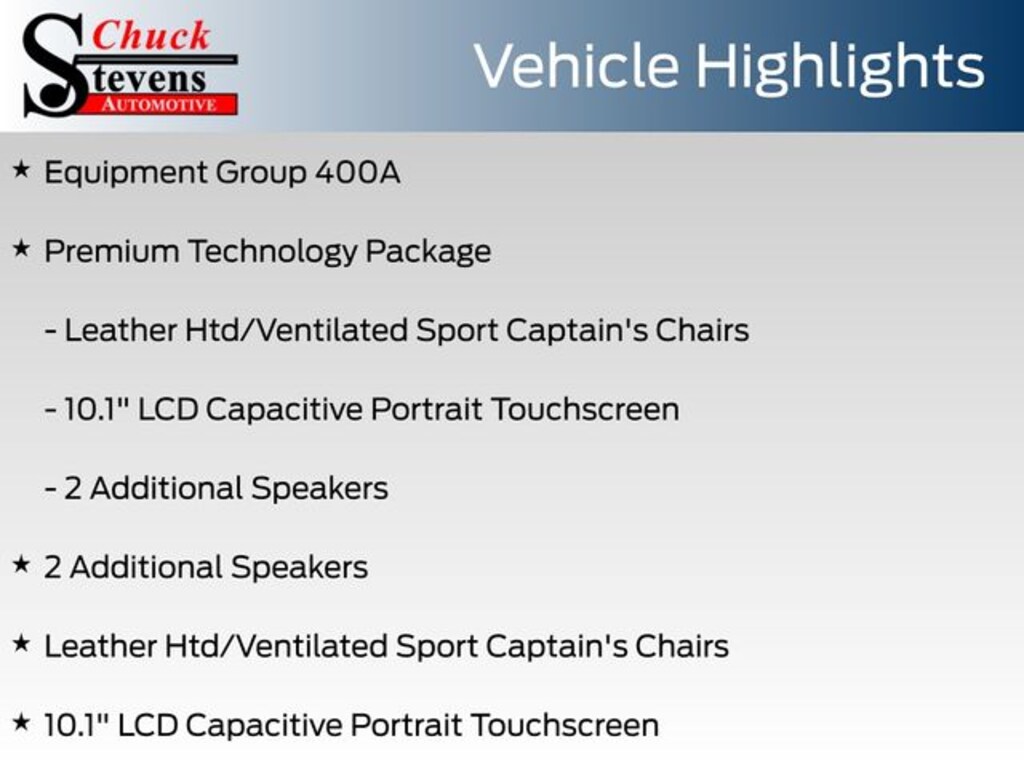 10.1" LCD Capacitive Portrait Touchscreen, 2 Additional Speakers, 20" Machined Aluminum w/Painted Pockets Wheels, Alloy wheels, Equipment Group 400A, Leather Htd/Ventilated Sport Captain's Chairs, Premium Technology Package.