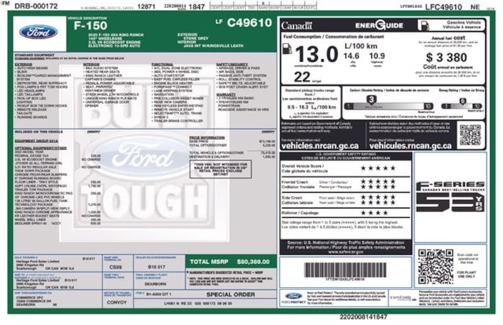 2020 Ford F-150 King Ranch 4D SuperCrew King Ranch Stone Gray Metallic 4WD 3.5L V6 EcoBoost 10-Speed Automatic