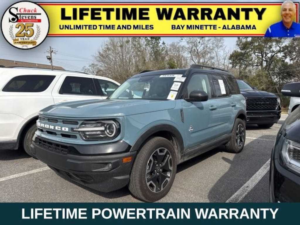Welcome to Chuck Stevens Dodge Chrysler Jeep Ram Fiat located on HWY 31 South, Bay Minette Alabama. We are home of The Lifetime Powertrain Warranty at no additional cost. Grab a great deal with our low-price guarantee on this 2021 Ford Bronco Sport Outer Banks while we still have it. At Chuck Stevens CDJRF our Pre-Owned vehicles have been fully inspected and reconditioned by a certified technician. The Blue 2021 Ford Bronco Sport Outer Banks with Leather Trimmed Heated Sport Contour Bucket Seats interior is a wonderful choice.