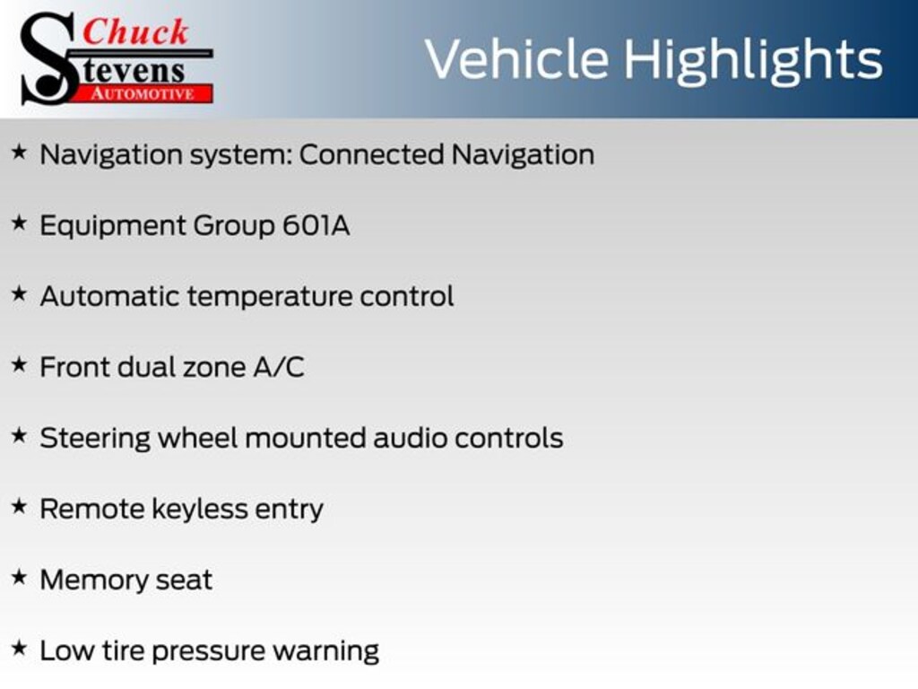 At Chuck Stevens Ford, we also include our exclusive Lifetime Powertrain Warranty at no additional cost. No gimmicks, no fine print, and serviceable at any certified repair facility nationwide.
