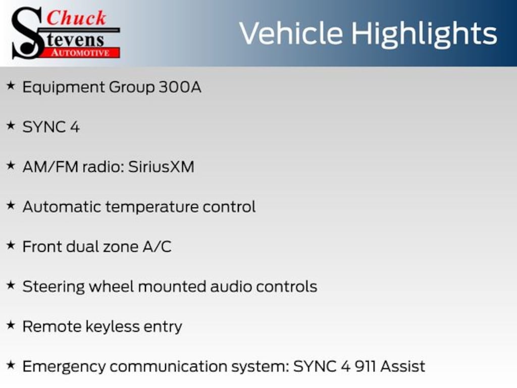 At Chuck Stevens Ford, we also include our exclusive Lifetime Powertrain Warranty at no additional cost. Serviceable at any certified repair facility nationwide.
