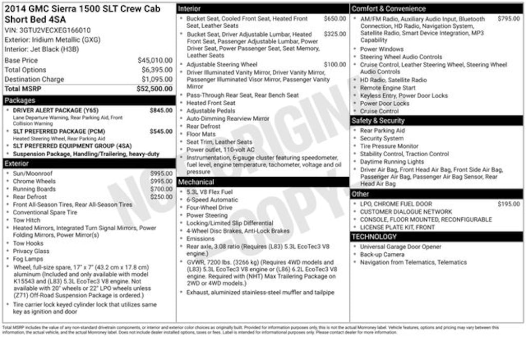 2014 GMC Sierra 1500 SLT 4D Crew Cab SLT Iridium Metallic 4WD EcoTec3 5.3L V8 Flex Fuel 6-Speed Automatic Electronic with Overdrive