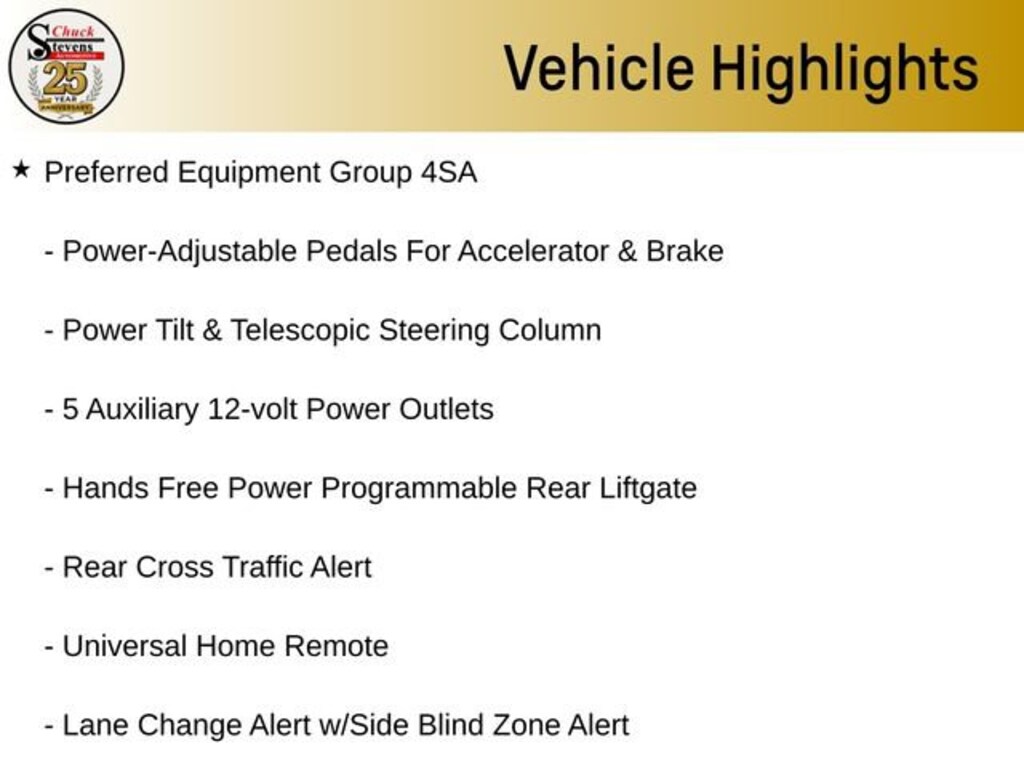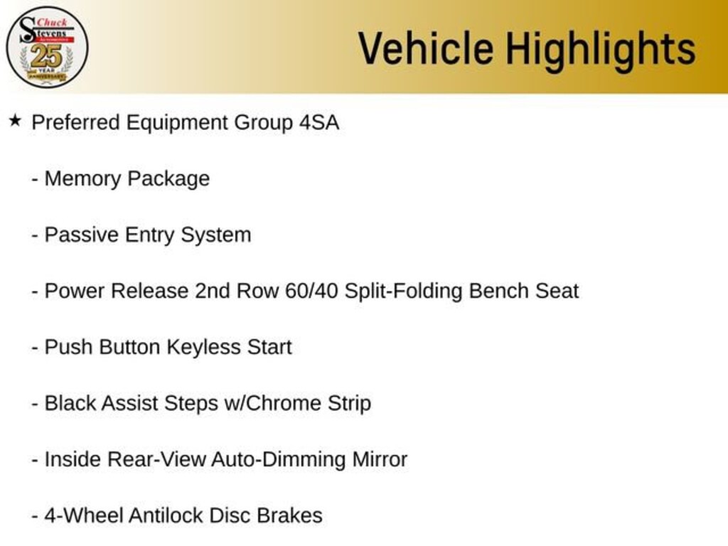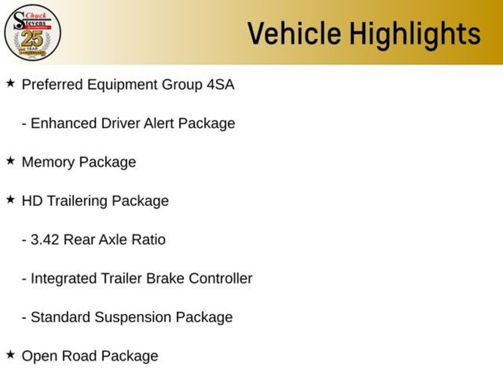 22 6-Spoke Split Chrome (LPO) Wheels, 3.42 Rear Axle Ratio, 4-Wheel Antilock Disc Brakes, 5 Auxiliary 12-volt Power Outlets, Adjustable pedals, All-Weather Floor Liner Package (LPO), Alloy wheels, Apple CarPlay/Android Auto, Automatic temperature control, Black Assist Steps w/Chrome Strip, Bright Bodyside Moldings, Chrome Grille Insert (LPO), Emergency communication system: OnStar and GMC connected services capable, Enhanced Driver Alert Package, Forward Collision Alert, Front dual zone A/C, Front fog lights, Fully automatic headlights, Hands Free Power Programmable Rear Liftgate, HD Trailering Package, Heated & Ventilated Driver & Front Passenger Seats, Heated Leather-Wrapped Steering Wheel, Inside Rear-View Auto-Dimming Mirror, Integrated Trailer Brake Controller, IntelliBeam Automatic High Beam On/Off, Lane Change Alert w/Side Blind Zone Alert, Lane Keep Assist w/Lane Departure Warning, License Plate Front Mounting Package, Low Speed Forward Automatic Braking, Memory Package, Memory seat, Open Road Package, Passive Entry System, Pedal memory, Polished Exhaust Tip, Power Liftgate, Power Release 2nd Row 60/40 Split-Folding Bench Seat, Power Tilt & Telescopic Steering Column, Power Tilt-Sliding Sunroof w/Express-Open/Close, Power-Adjustable Pedals For Accelerator & Brake, Preferred Equipment Group 4SA, Premium Edition, Premium Smooth Ride Suspension Package, Push Button Keyless Start, Rain sensing wipers, Rear Cross Traffic Alert, Rear Seat Blu-Ray/DVD Entertainment System, Remote Keyless Entry, Standard Suspension Package, Steering wheel memory, Steering wheel mounted audio controls, Telescoping steering wheel, Tilt steering wheel, Universal Home Remote, Variably intermittent wipers.