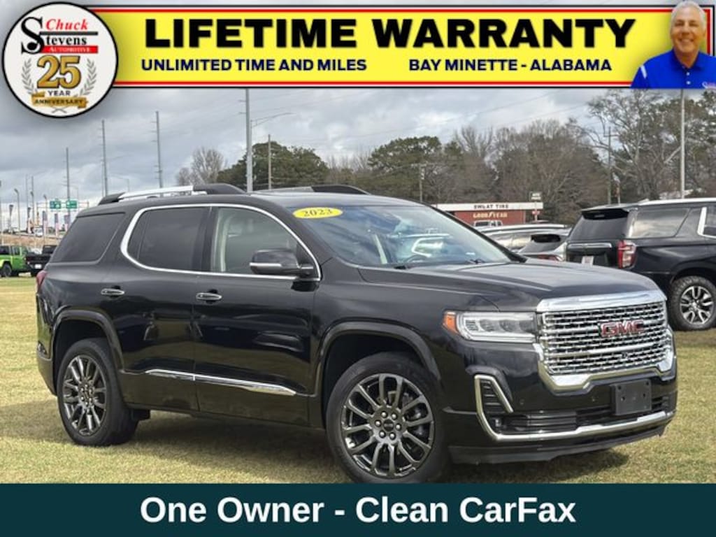 Welcome to Chuck Stevens Dodge Chrysler Jeep Ram Fiat located on HWY 31 South, Bay Minette Alabama. We are home of The Lifetime Powertrain Warranty at no additional cost. Grab a great deal with our low-price guarantee on this 2023 GMC Acadia Denali while we still have it. At Chuck Stevens CDJRF our Pre-Owned vehicles have been fully inspected and reconditioned by a certified technician. The Black 2023 GMC Acadia Denali with Ebony Twilight Metallic interior is a wonderful choice.