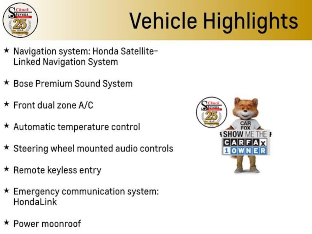 3rd row seats: split-bench, Adaptive Cruise Control: Adaptive Cruise Control (ACC) with Low-Speed Follow, Alloy wheels, Apple CarPlay/Android Auto, Automatic temperature control, Blind Spot Information (BSI) System warning, Bose Premium Sound System, Emergency communication system: HondaLink, Front dual zone A/C, Fully automatic headlights, Heated Front Bucket Seats, Lane departure: Lane Keeping Assist System (LKAS) active, Navigation system: Honda Satellite-Linked Navigation System, Power Liftgate, Power moonroof, Reclining 3rd row seat, Remote keyless entry, Steering wheel mounted audio controls, Turn signal indicator mirrors, Wheels: 20 Machine Face Shark Gray w/Blk Lug Nuts.