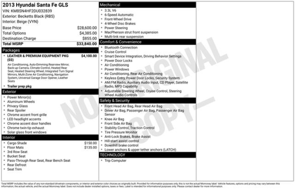 Take advantage of our low-price guarantee on this 2013 Hyundai Santa Fe. This Santa Fe comes finished in Becketts Black Pearl with a Beige interior, making it a fantastic choice for your next vehicle.