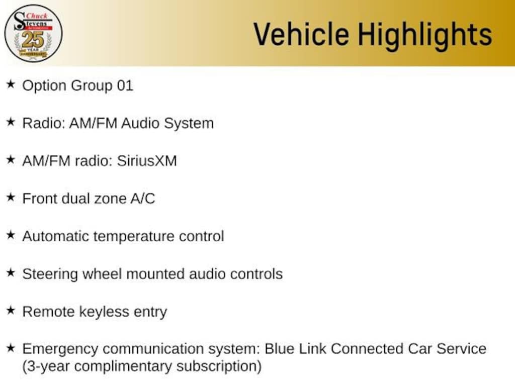 - Emergency communication system: Blue Link Connected Car Service (3-year complimentary subscription)