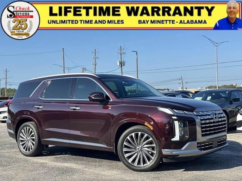 Welcome to Chuck Stevens Chevrolet located on HWY 31 South, Bay Minette Alabama. We are home of Lifetime Powertrain Warranty. A Lifetime Powertrain Warranty at no additional cost. Grab a great deal with our low-price guarantee on this 2024 Hyundai Palisade while we still have it. At Chuck Stevens Chevrolet our Pre-Owned vehicles have been fully inspected and reconditioned by a certified technician. The Sierra Burgundy 2024 Hyundai Palisade with Navy/Beige Leather interior is a wonderful choice.