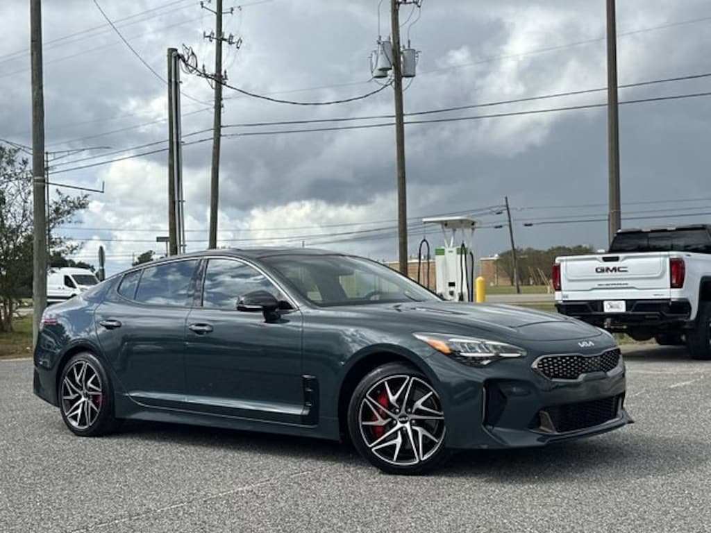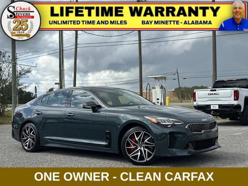 Welcome to Chuck Stevens Chevrolet located on HWY 31 South, Bay Minette Alabama. We are home of Lifetime Powertrain Warranty. A Lifetime Powertrain Warranty at no additional cost. Grab a great deal with our low-price guarantee on this 2023 Kia Stinger while we still have it. At Chuck Stevens Chevrolet our Pre-Owned vehicles have been fully inspected and reconditioned by a certified technician. The Ascot Green 2023 Kia Stinger with Black Leather interior is a great choice.