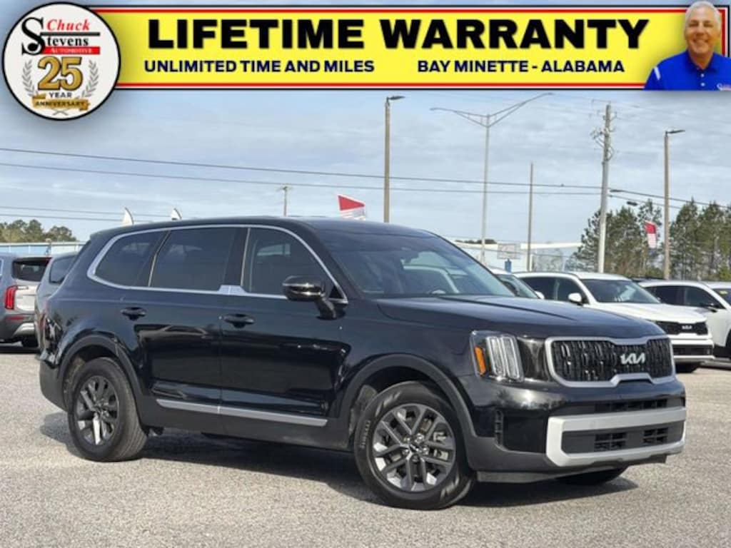 Grab a great deal with our low-price guarantee on this 2025 Kia Telluride LX while we still have it. At Chuck Stevens Chevrolet our Pre-Owned vehicles have been fully inspected and reconditioned by a certified technician. The Black 2025 Kia Telluride LX with Ebony Black interior is a wonderful choice.