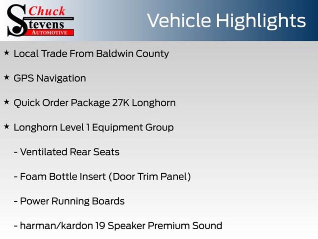 At Chuck Stevens Ford, we also include our exclusive Lifetime Powertrain Warranty at no additional cost. No gimmicks, no fine print, and serviceable at any certified repair facility nationwide.