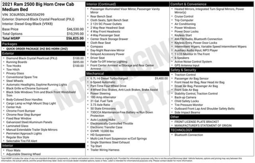 2021 Ram 2500 Big Horn Diamond Black Crystal Pearlcoat 4D Crew Cab Big Horn 4WD Cummins 6.7L I6 Turbodiesel 6-Speed Automatic