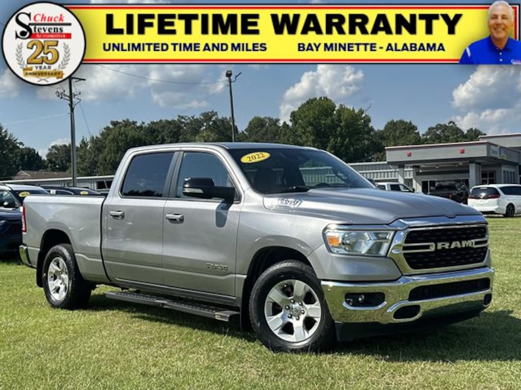 Welcome to Chuck Stevens Dodge Chrysler Jeep Ram Fiat located on HWY 31 South, Bay Minette Alabama. We are home of The Lifetime Powertrain Warranty at no additional cost. Grab a great deal with our low-price guarantee on this 2022 Ram 1500 while we still have it. At Chuck Stevens CDJRF our Pre-Owned vehicles have been fully inspected and reconditioned by a certified technician. The Billet Silver Metallic Clearcoat 2022 Ram 1500 with Diesel Gray/Black Cloth interior is a great choice.