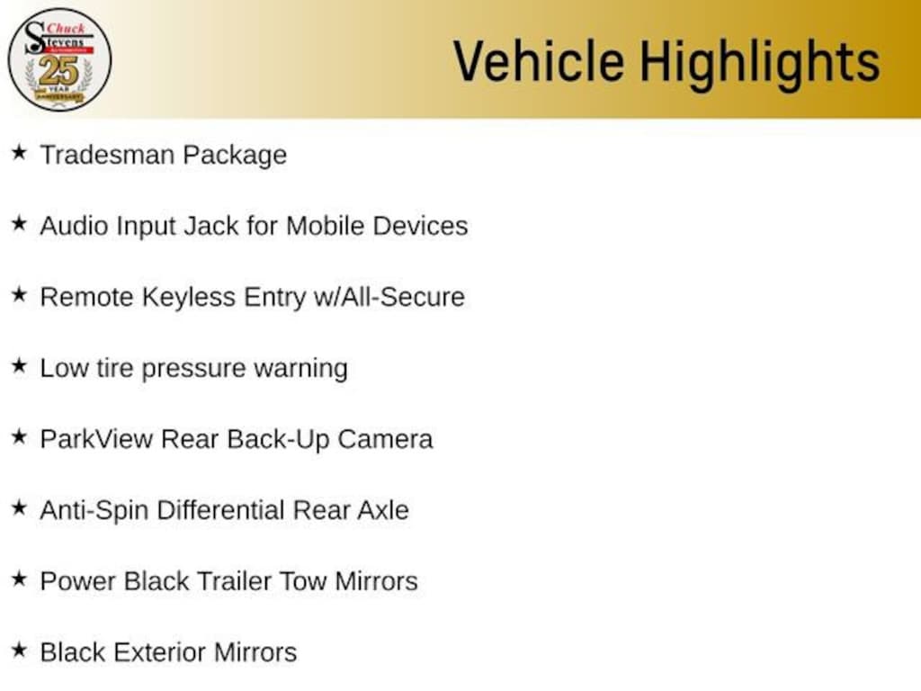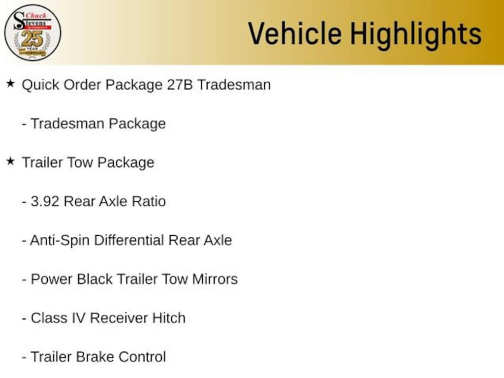 Welcome to Chuck Stevens Chevrolet located on HWY 31 South, Bay Minette Alabama. We are home of Lifetime Powertrain Warranty. A Lifetime Powertrain Warranty at no additional cost.Grab a great deal with our low-price guarantee on this 2023 Ram 1500 Classic Tradesman while we still have it. At Chuck Stevens Chevrolet our Pre-Owned vehicles have been fully inspected and reconditioned by a certified technician. The White 2023 Ram 1500 Classic Tradesman with Black interior is a wonderful choice.- Trailer Tow Package- Remote Keyless Entry w/All-Secure- Full Size Spare Tire- 2 Additional Key FobsThis 2023 Ram 1500 Classic Tradesman is powered by the legendary HEMI 5.7L V8 engine, delivering a potent blend of power and efficiency. With a smooth-shifting 8-speed automatic transmission and rear-wheel drive, this truck offers a dynamic and responsive driving experience. Expect to achieve an impressive 15 mpg in the city and 21 mpg on the highway, making it a practical choice for both work and play.The Tradesman trim level provides a well-equipped package, featuring a host of desirable features. The Trailer Tow Package equips this Ram with a Class IV receiver hitch, trailer brake control, and power black tow mirrors, making it an excellent choice for those with towing needs. The Remote Keyless Entry with All-Secure system adds convenience, while the full-size spare tire and additional key fobs provide added peace of mind.Stepping inside, you'll find a spacious and durable cabin, with a 40/20/40 split bench seat and a center armrest providing ample room for both passengers and cargo. The Uconnect 3 infotainment system with a 5-inch display keeps you connected and entertained on the go.Safety is a top priority, with features like anti-lock brakes, electronic stability control, and a ParkView rear backup camera ensuring confident maneuverability. The Ram 1500 Classic Tradesman also boasts a suite of advanced airbags, providing excellent protection for you and your loved ones.Whether you're tackling tough jobs or embarking on weekend adventures, this 2023 Ram 1500 Classic Tradesman is the perfect companion. Visit us today at Chuck Stevens Chevrolet to experience this exceptional truck firsthand and discover why it's the ideal choice for your next vehicle.LIFETIME POWERTRAIN WARRANTY PROGRAM is included at no additional charge for all vehicles that have less than 80,000 miles. It is one of the most comprehensive powertrain warranty programs in the market. See dealer for details.