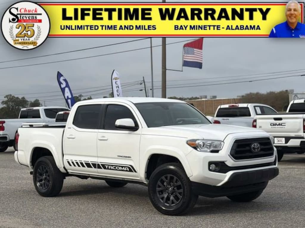 Grab a great deal with our low-price guarantee on this 2023 Toyota Tacoma SR5 V6 while we still have it. At Chuck Stevens Chevrolet our Pre-Owned vehicles have been fully inspected and reconditioned by a certified technician. The White 2023 Toyota Tacoma SR5 V6 with Fabric Seat Trim interior is a wonderful choice.