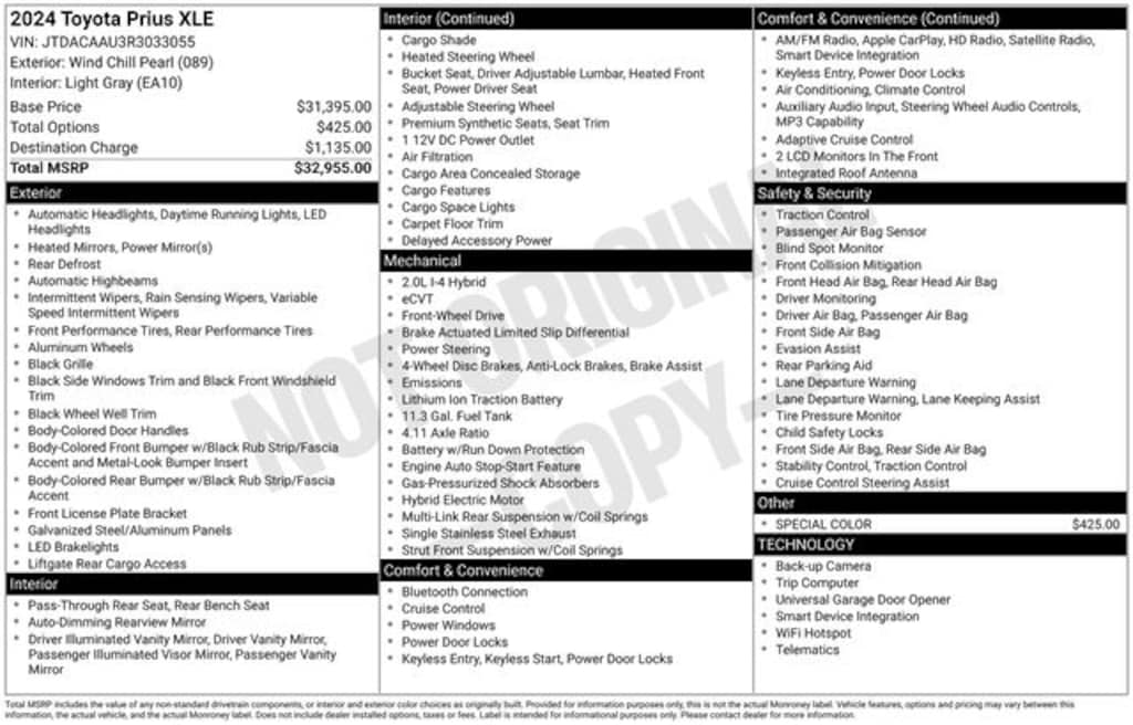 Take advantage of our low-price guarantee on this 2024 Toyota Prius. This Prius comes finished in Pearl with a Light Gray interior, making it a fantastic choice for your next vehicle.
