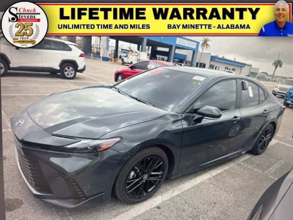 Welcome to Chuck Stevens Chevrolet located on HWY 31 South, Bay Minette Alabama. We are home of Lifetime Powertrain Warranty. A Lifetime Powertrain Warranty at no additional cost. Grab a great deal with our low-price guarantee on this 2025 Toyota Camry while we still have it. At Chuck Stevens Chevrolet our Pre-Owned vehicles have been fully inspected and reconditioned by a certified technician. The Black 2025 Toyota Camry with Cloth interior is a superb choice.The online price includes a $2,500 Cash Down or trade equity. To qualify, customers must trade in a vehicle with a minimum appraised value of $2,500 or Cash Down. All prices reflect dealership financing and include a $1,000 finance coupon. See dealer for full details.Recent Arrival! 48/47 City/Highway MPG2025 Toyota Camry SE Black 4D Sedan SE FWD 2.5L 4-Cylinder 16V DOHC eCVTLIFETIME POWERTRAIN WARRANTY PROGRAM is included at no additional charge for all vehicles that have less than 80,000 miles. It is one of the most comprehensive powertrain warranty programs in the market. See dealer for details.