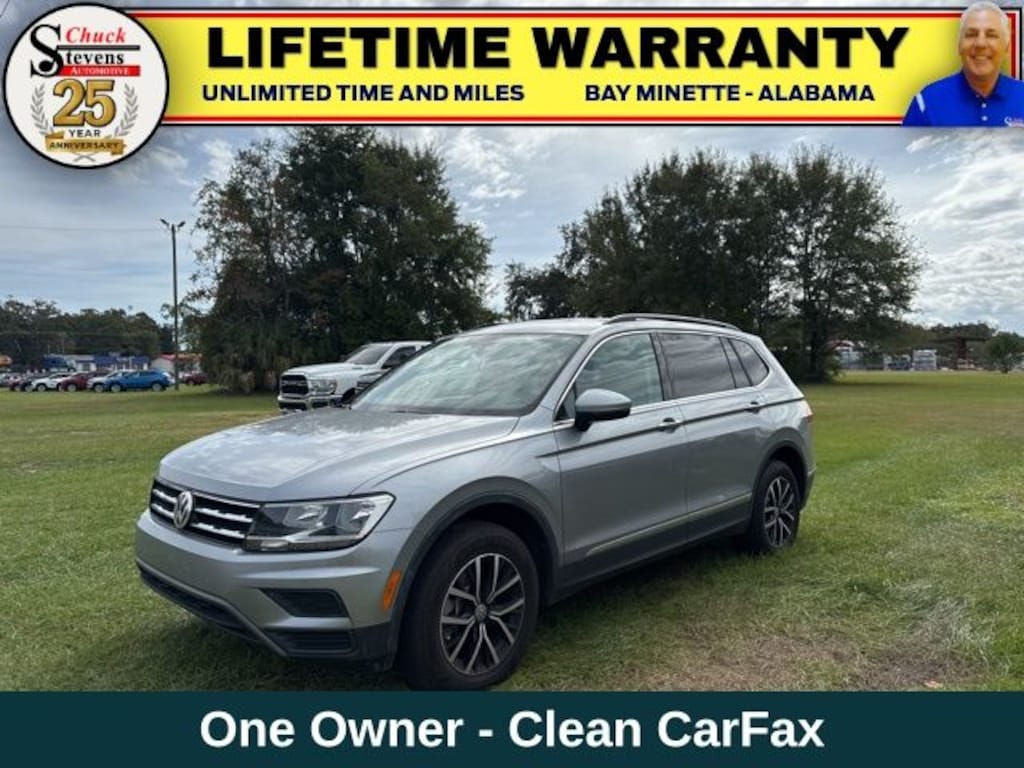 Welcome to Chuck Stevens Dodge Chrysler Jeep Ram Fiat located on HWY 31 South, Bay Minette Alabama. We are home of The Lifetime Powertrain Warranty at no additional cost. Grab a great deal with our low-price guarantee on this 2021 Volkswagen Tiguan while we still have it. At Chuck Stevens CDJRF our Pre-Owned vehicles have been fully inspected and reconditioned by a certified technician. The Silver Metallic 2021 Volkswagen Tiguan with Storm Gray w/Perforated V-Tex Leatherette Seating Surfaces interior is an outstanding choice.